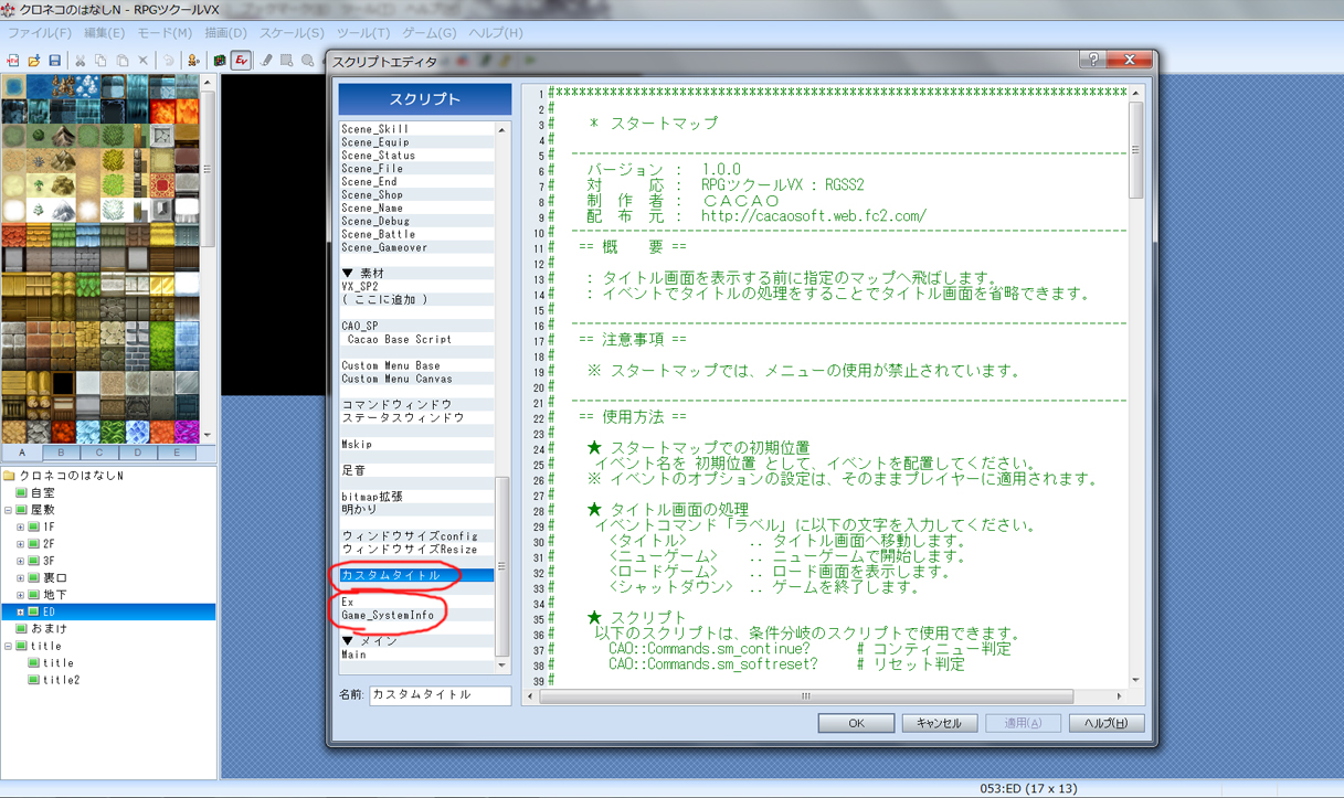 上記HPからRGSS2素材をDL&コピペし、手順通りに導入します。