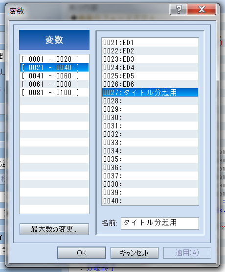 タイトルを変更するときに使う変数に名前を付けておきます。