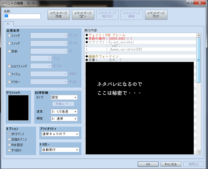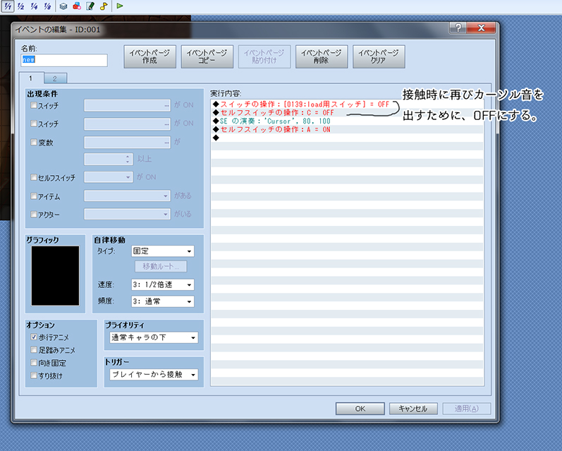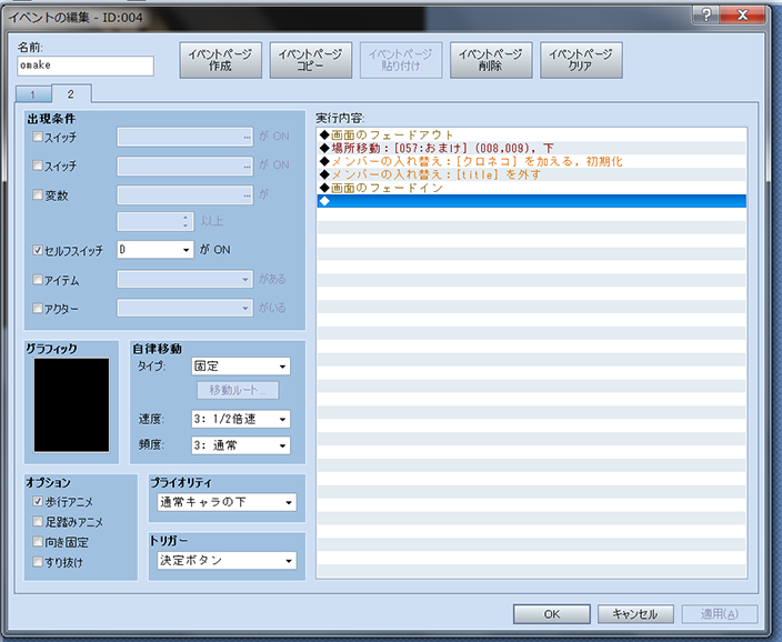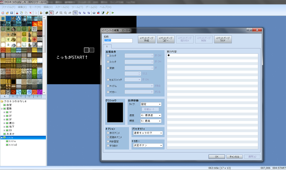 ・分起用の真っ黒なマップに、まずはスタート位置のイベントを配置。