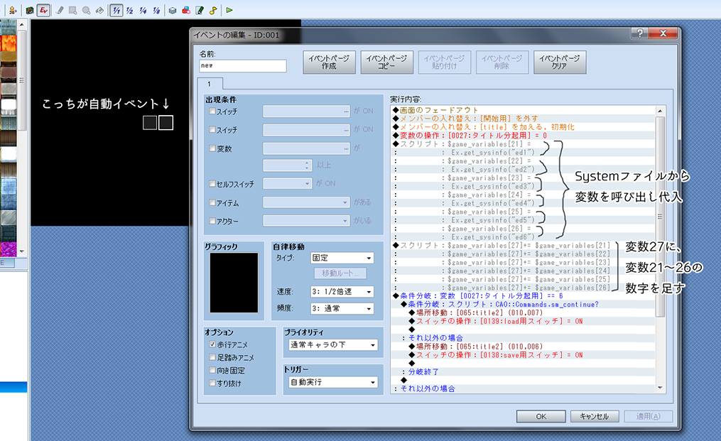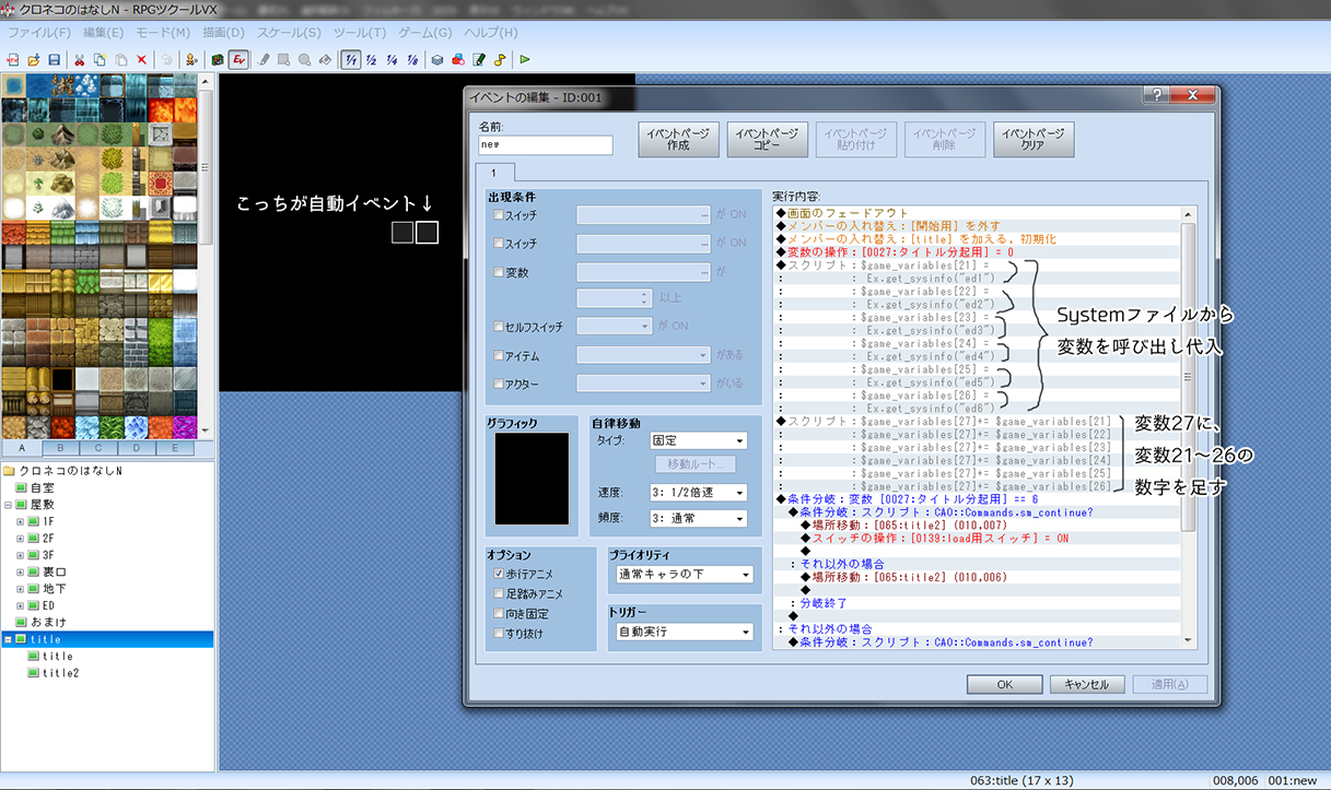 EDを迎えた時に変数に数字を代入し、それがSystemファイルに残るように、