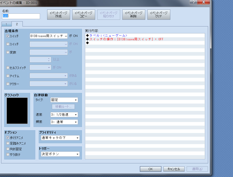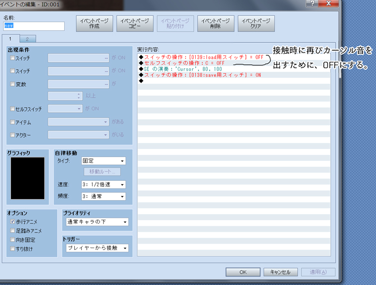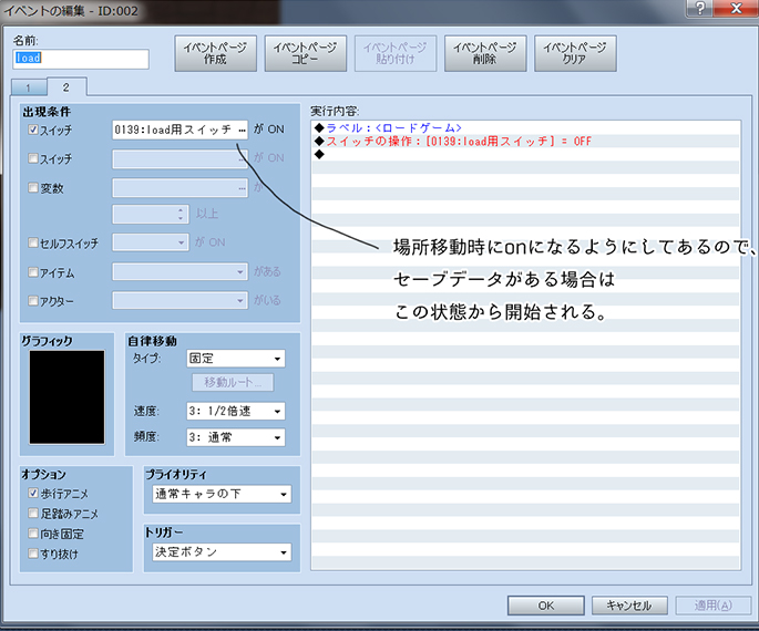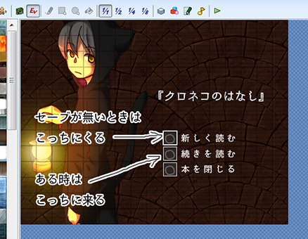 ・ニューゲーム&ロード用のイベントは、最初からキャラが乗っているので