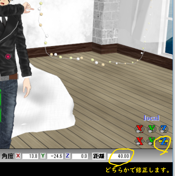 「ボーン位置」のZに数値を入れエンターを押すか、